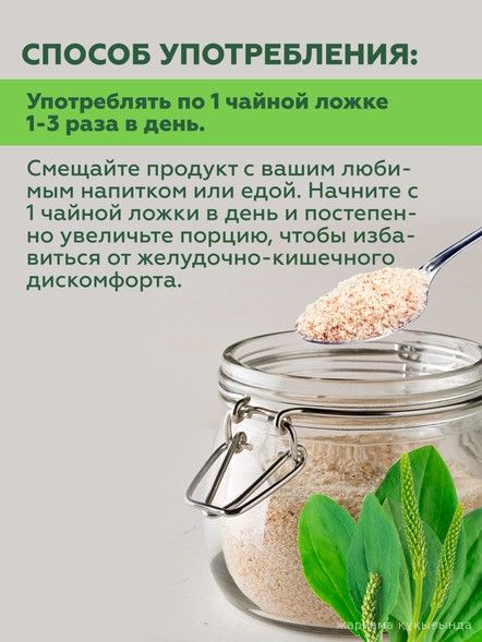 Псиллиум - лекарственное растение является родственником подорожника, который мы в детстве все прикладывали на раны. Практически полностью (на 80 - 85%) состоит из клетчатки (около 70% которой составляет растворимая). Проходя по желудочно-кишечному тракту, этот гель обволакивает его стенки, защищая их от повреждений, затормаживает всасывание жиров, а также захватывает и выводит из организма накопившиеся шлаки, токсины и прочие ненужные организму вещества. Имеет послабляющий эффект, снижает уровня холестерина и сахара в крови, нормализует работу ЖКТ, способствует нормализации веса в программах похудения.