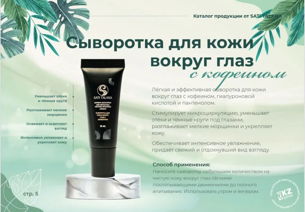 Лёгкая и эффективная сыворотка для кожи вокруг глаз с кофеином, гиалуроновой кислотой и пантенолом.