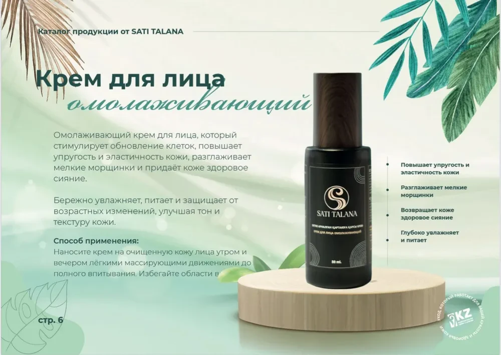 Омолаживающий крем для лица, который стимулирует обновление клеток, повышает упругость и эластичность кожи, разглаживает мелкие морщинки и придаёт коже здоровое сияние.