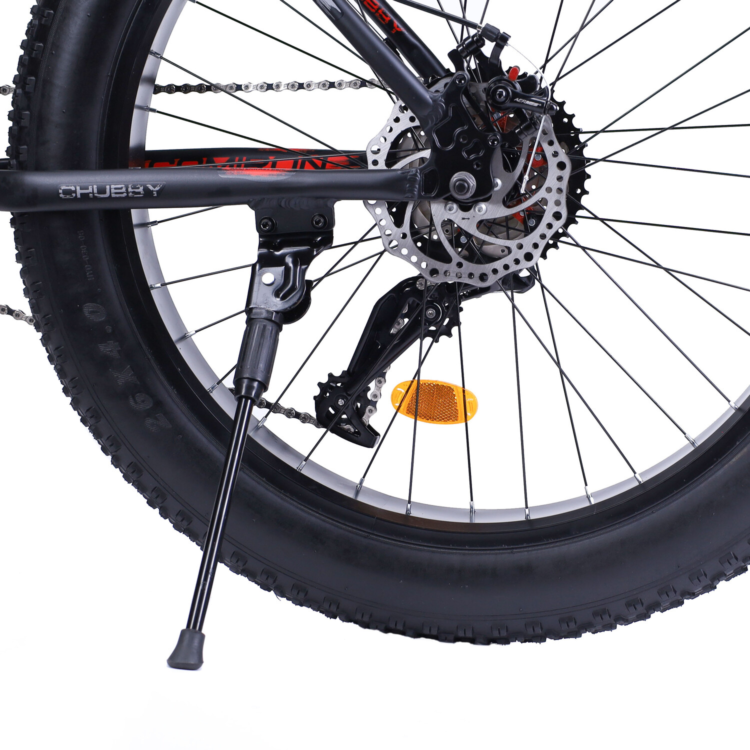 Широкие покрышки 4", благодаря высокой проходимости, позволяют ездить по любым дорогам и летом, и даже зимой. Облегчённая трансмиссия 1*10sp с кассетой 11-42T позволяет легко крутить педали, даже в серъёзную гору.